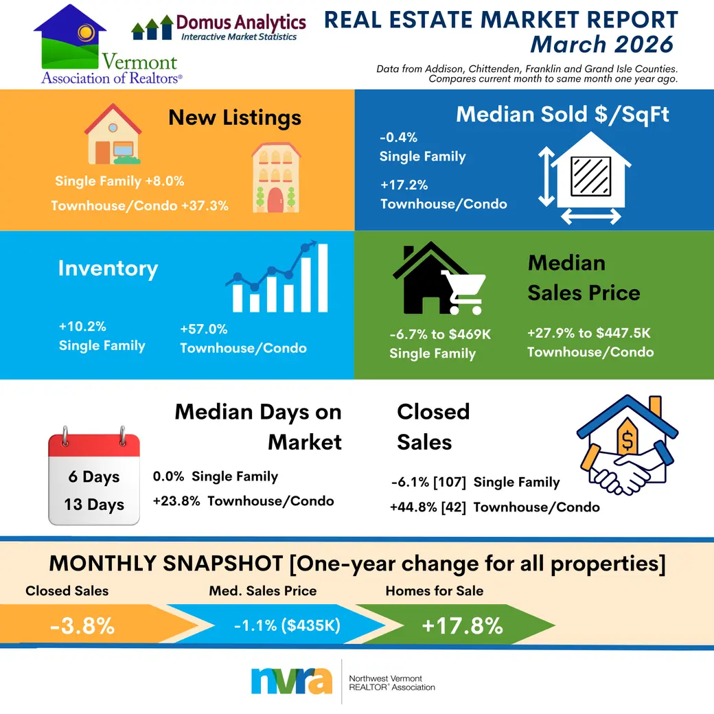 Northwest Vermont REALTOR® Association Releases March 2026 Market Statistics